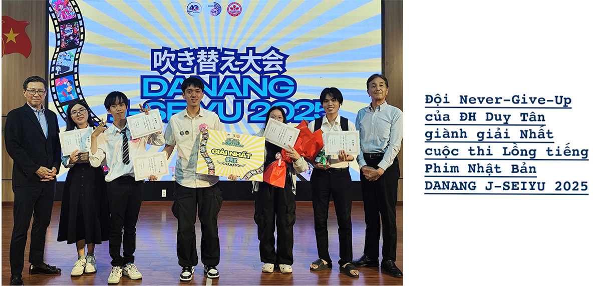 Giải Nhất Cuộc thi Lồng tiếng Phim Nhật Bản J-SEIYU 2025 đã được trao cho SV Khoa Tiếng Nhật, ĐH Duy Tân khi vượt qua nhiều đội thi mạnh, khẳng định năng lực ngoại ngữ và kỹ năng biểu đạt xuất sắc. Qua mỗi vòng thi, SV DTU đã xuất sắc thể hiện khả năng tiếng Nhật vượt trội cùng những thể hiện lồng tiếng đầy cảm xúc, kỹ thuật cao, có cá tính rõ nét.