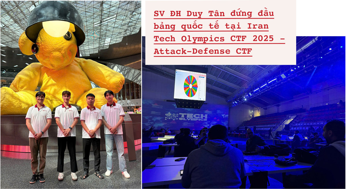Ở đấu trường An toàn Thông tin, vượt lên trên rất nhiều các đội tuyển tham dự, đội DTU_4lias đã xuất sắc đứng Top 5/27 toàn bảng và Top 1 trong khối các đội quốc tế tại vòng thi Attack-Defense CTF 2025, thuộc khuôn khổ Iran Tech Olympics CTF 2025 - một thành tích đáng tự hào, khi các đội còn lại đều đến từ các doanh nghiệp hoặc tổ chức chuyên nghiệp trong lĩnh vực An ninh Mạng. Đây là sự kiện lớn quy tụ hơn 1.100 chuyên gia công nghệ đến từ Nga, Pakistan, Oman, Việt Nam, Thổ Nhĩ Kỳ, Tunisia, Iraq, Bangladesh, Azerbaijan, Ấn Độ, Liban, Indonesia, Romania, Algeria, Hà Lan và nước chủ nhà Iran.