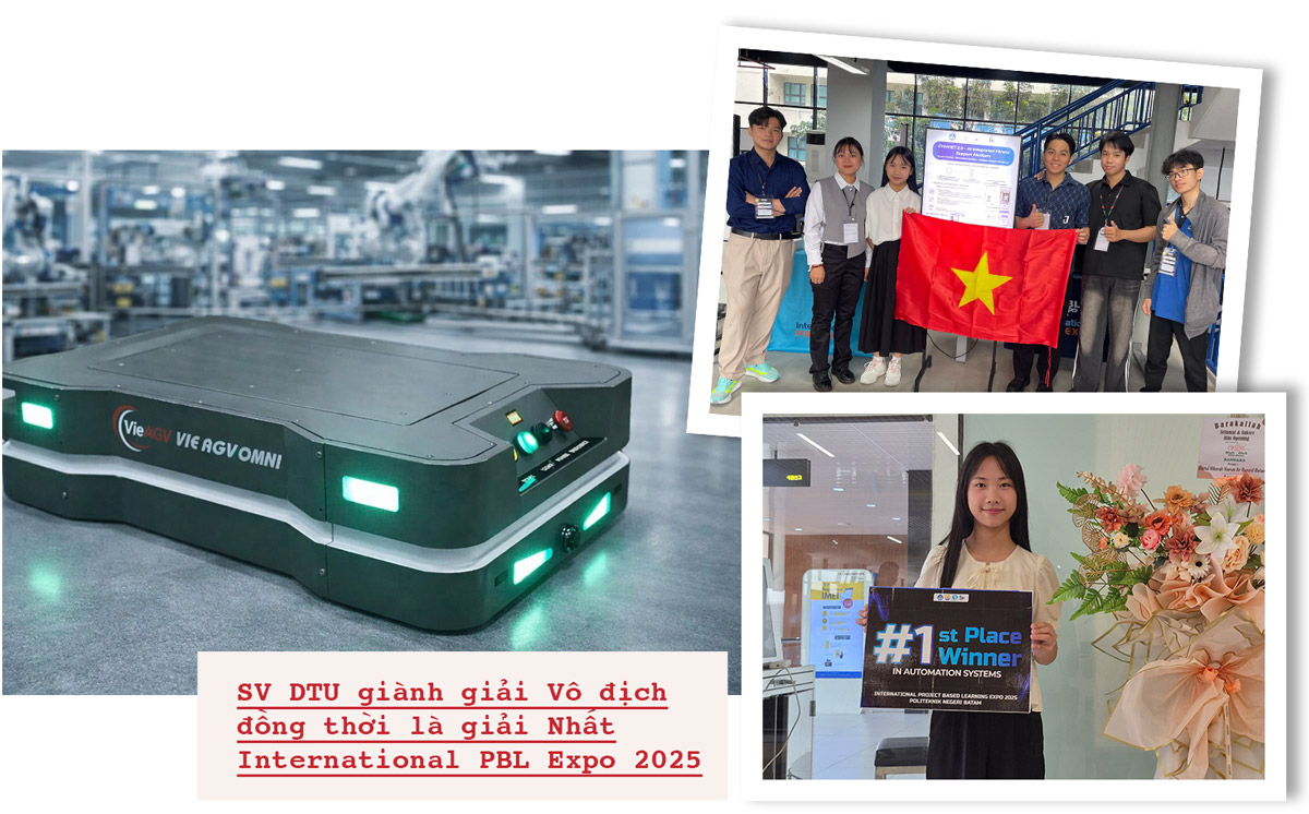 Giải Nhất Cuộc thi International PBL Expo 2025 tại Indonesia với sản phẩm Robot Tự hành "VIE AGV Omni". Vượt qua giai đoạn xác lập ý tưởng, nhóm trực tiếp trình diễn sản phẩm thực tế được thiết kế nhỏ gọn, có dạng hình khối với kích thước 90 x 60 x 35 cm, dễ dàng di chuyển trong lối đi hẹp, hỗ trợ doanh nghiệp từng bước thay thế các công việc vận chuyển thủ công và xe nâng cồng kềnh. Cùng với giải Nhất Cuộc thi International PBL Expo 2025, trong năm 2025, sản phẩm này của nhóm đã được trao giải Ba Cuộc thi ASEAN Entrepreneurship Hackathon tại Indonesia và giải Ba Cuộc thi Khởi nghiệp Quốc gia SV_StartUp lần thứ VII.