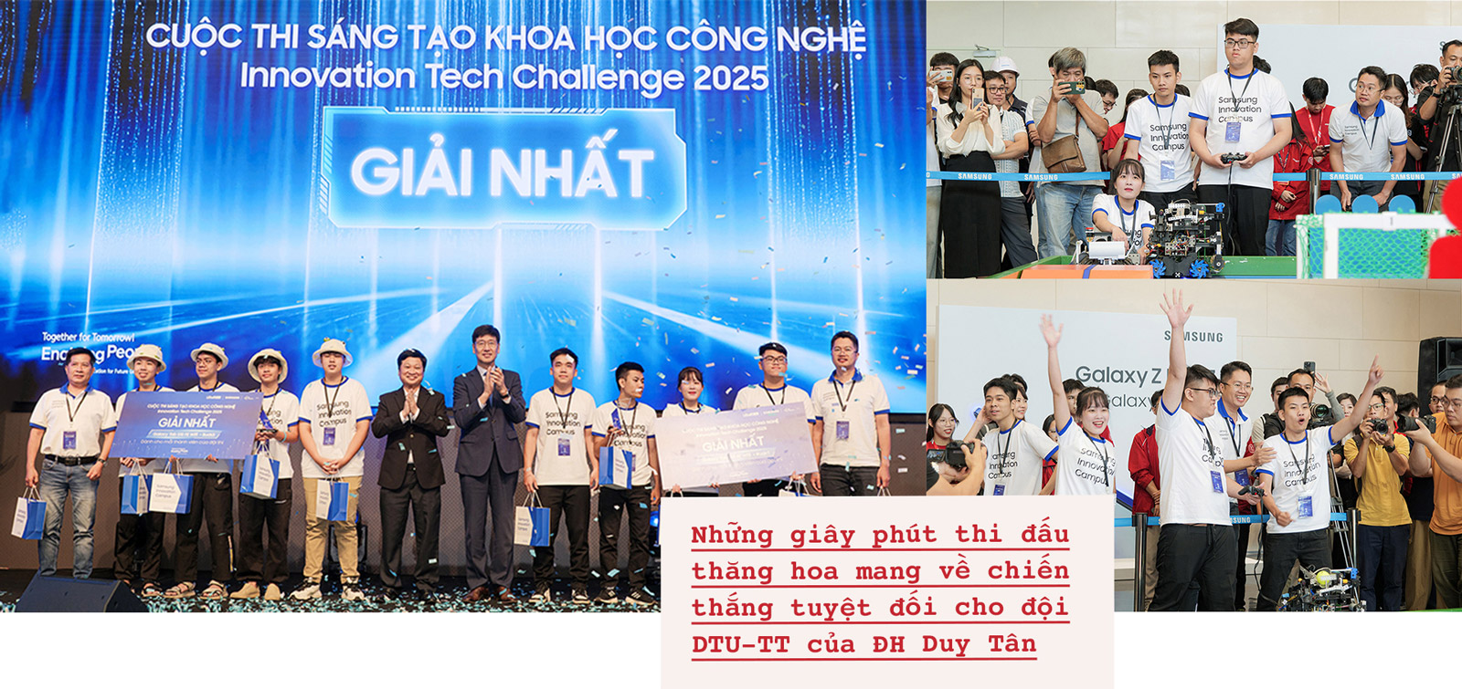 Giải Nhất (năm thứ 3 liên tiếp) cuộc thi Sáng tạo Khoa học Công nghệ - Innovation Tech Challenge 2025, nằm trong khuôn khổ hoạt động Samsung Innovation Campus (SIC) do Samsung Việt Nam tổ chức. Trước đó, sinh viên của Trường đã giành giải Nhất năm 2024 và năm 2023 giành cả giải Nhất và Nhì. Liên tục đứng trên bục cao nhất của cuộc thi trong nhiều năm liền là minh chứng rõ nét cho chất lượng đào tạo cùng chiều sâu học thuật mà ĐH Duy Tân đã nhiều năm vun đắp.
