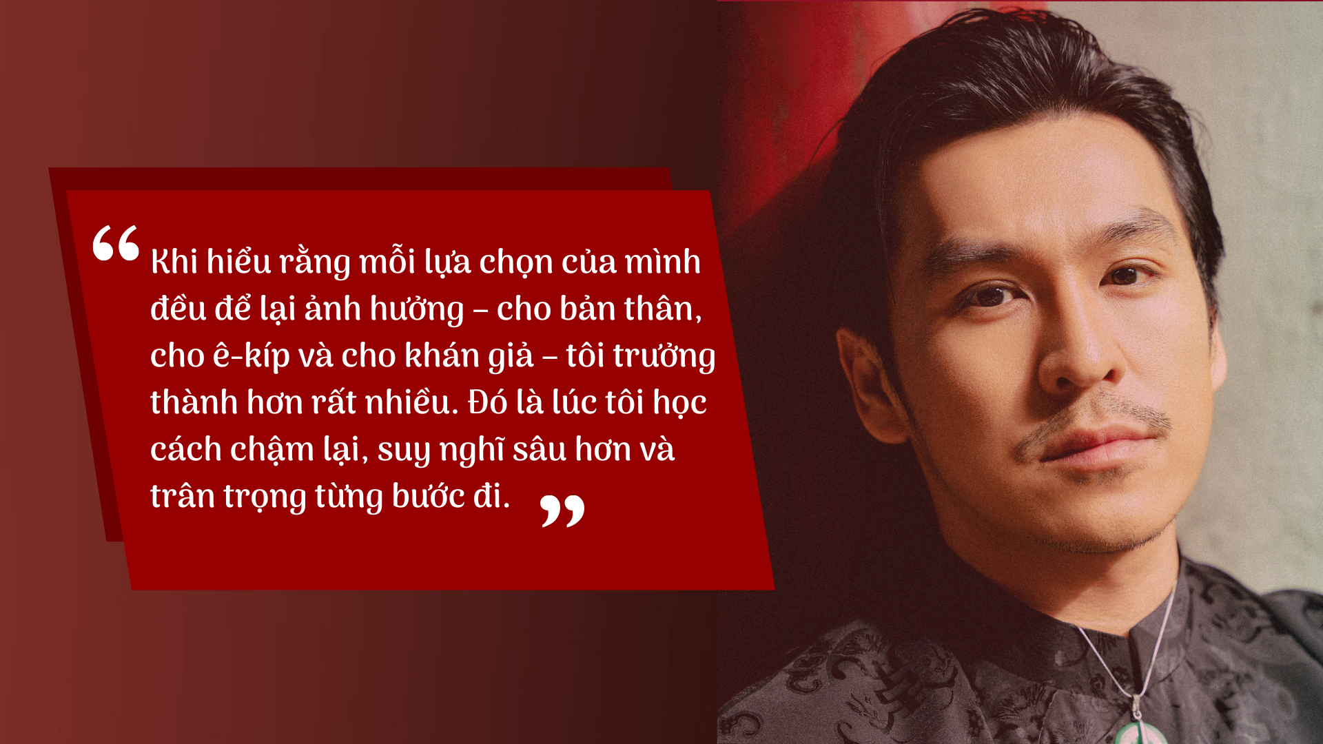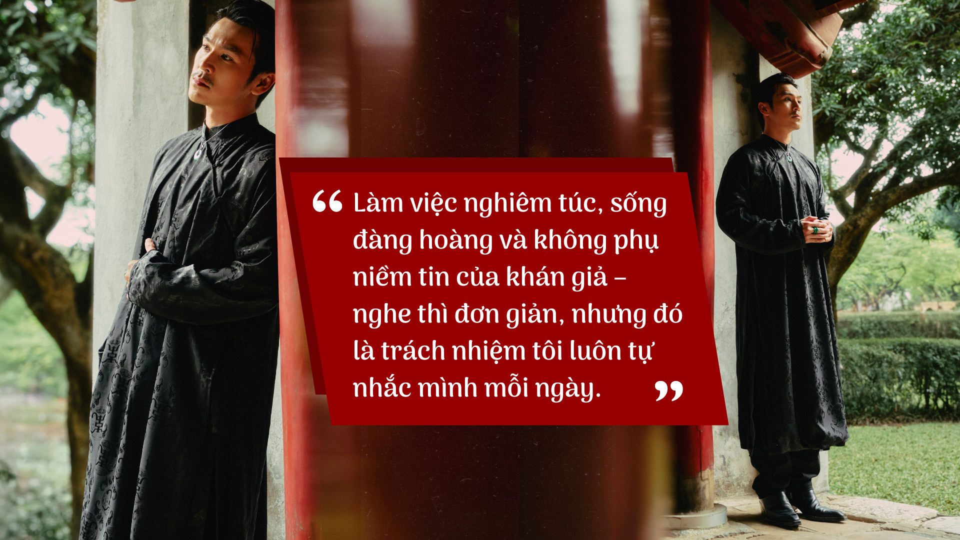 - Tôi nghĩ làm nghề lâu dài cần nhất là sự tử tế. Làm việc nghiêm túc, sống đàng hoàng và không phụ niềm tin của khán giả - nghe thì đơn giản, nhưng đó là trách nhiệm tôi luôn tự nhắc mình mỗi ngày.