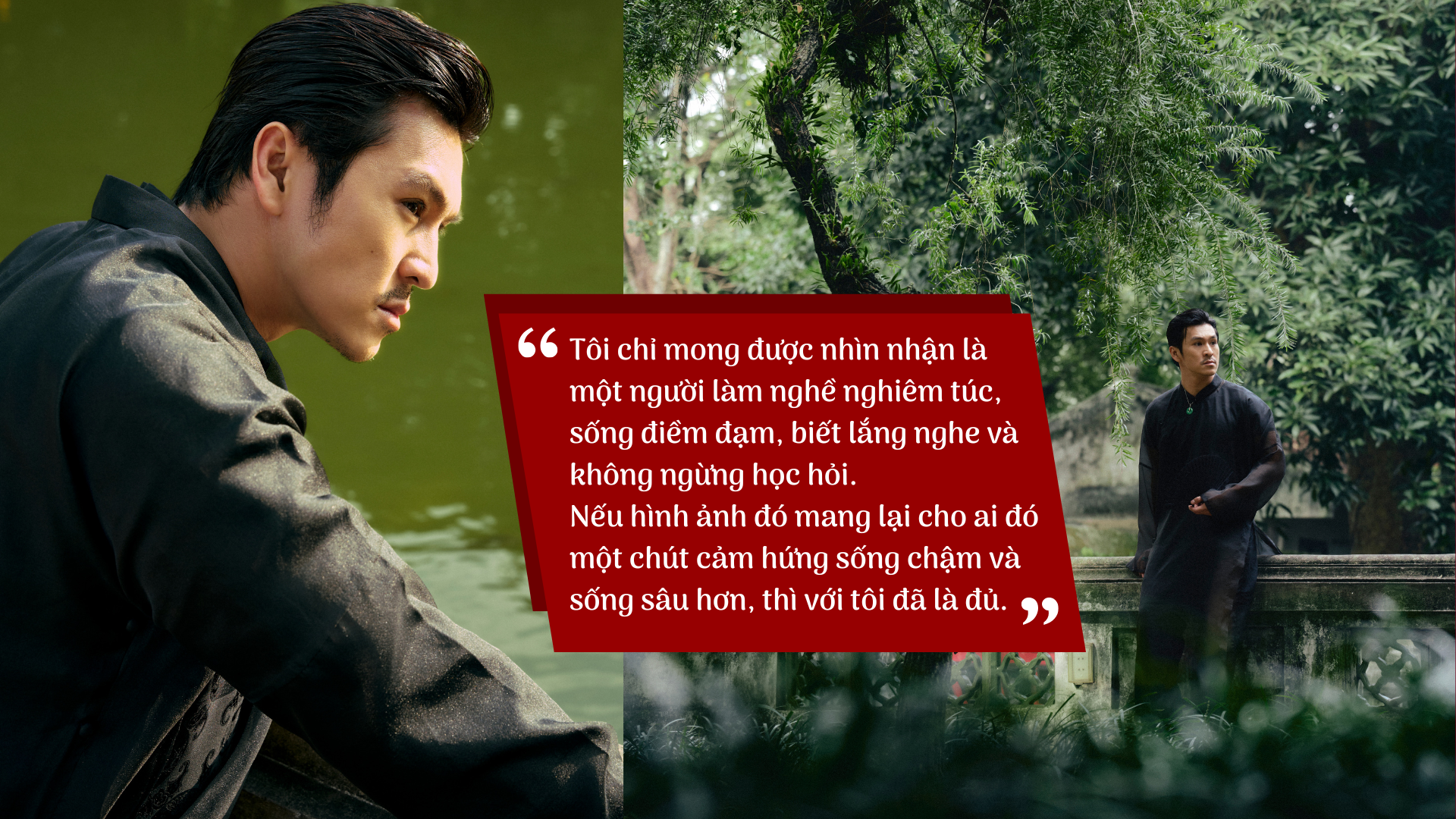 - Tôi không mong mình trở thành hình mẫu hoàn hảo. Tôi chỉ mong được nhìn nhận là một người làm nghề nghiêm túc, sống điềm đạm, biết lắng nghe và không ngừng học hỏi. Nếu hình ảnh đó mang lại cho ai đó một chút cảm hứng sống chậm và sống sâu hơn, thì với tôi đã là đủ.