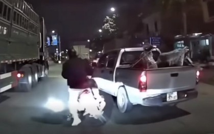 Truy tìm người đàn ông lái xe máy chở theo xe máy ở TPHCM