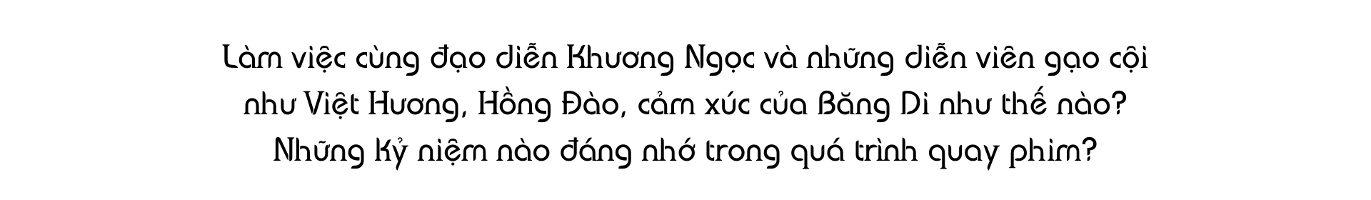 Tôi chưa từng có cơ hội làm việc với anh Khương Ngọc trước đây nhưng luôn ngưỡng mộ đạo diễn này vì tư duy làm phim mới lạ, độc đáo. Tôi vui và xúc động hơn nữa là dù nhiều năm không tham gia quá nhiều dự án điện ảnh, anh vẫn nhớ đến và cảm thấy tôi rất phù hợp với nhân vật Thương. Anh đã tin tưởng mời tôi trực tiếp vào vai này mà không cần qua casting