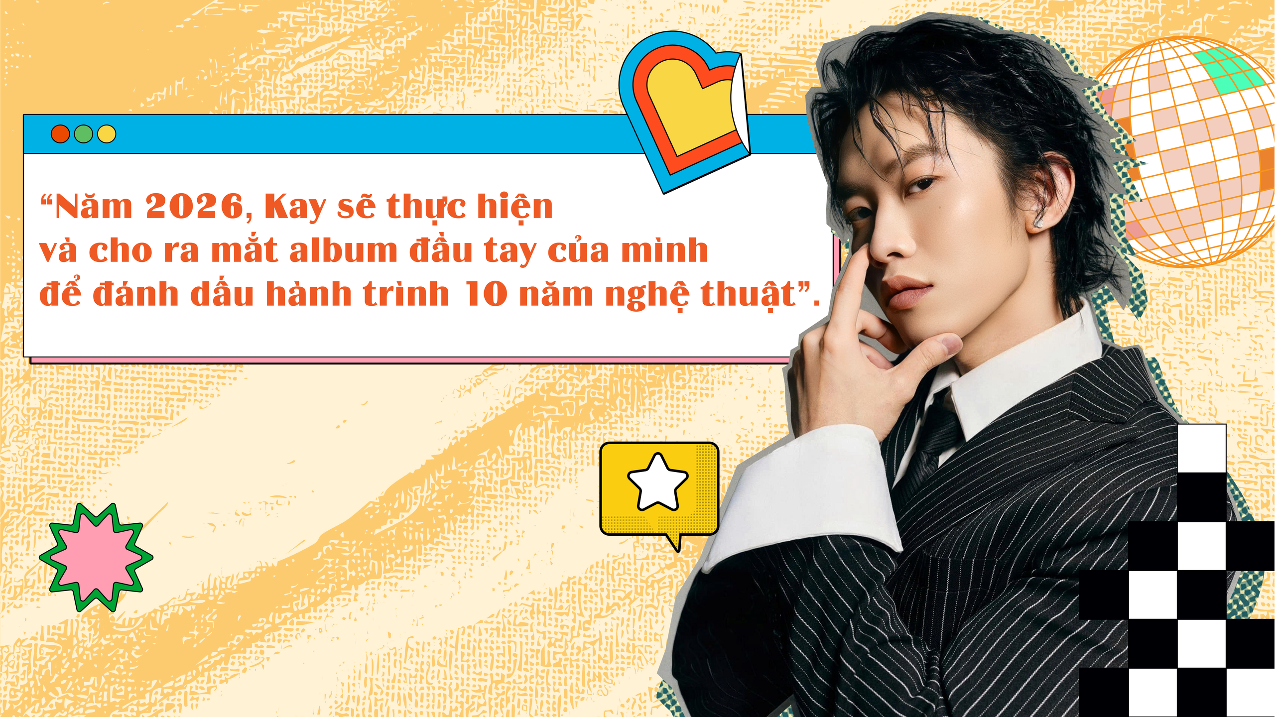 - Năm 2026, Kay sẽ thực hiện và cho ra mắt album đầu tay của mình để đánh dấu hành trình 10 năm nghệ thuật. Kay cũng mất hơn 1 năm để chuẩn bị âm nhạc, hình ảnh cho dự án này. Hy vọng dự án sẽ nhận được sự ủng hộ của mọi người.