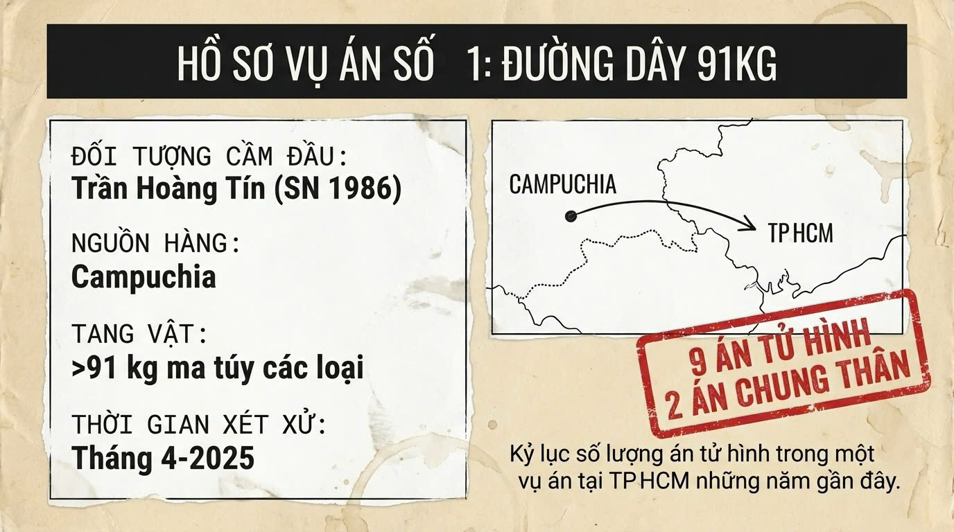 Cuối tháng 4-2025, Tòa án Nhân dân (TAND) TPHCM mở phiên sơ thẩm xét xử đường dây mua bán trái phép chất ma túy xuyên quốc gia do Trần Hoàng Tín (SN 1986) cầm đầu.