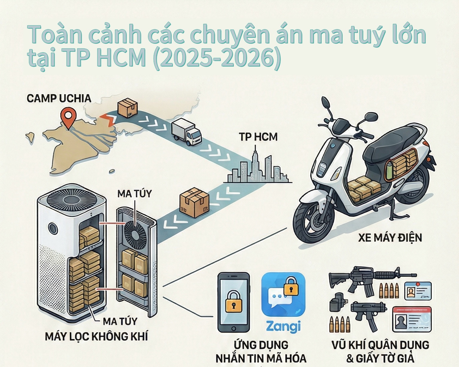 Chiều 3-2-2026, TAND TPHCM tuyên án 5 bị cáo trong đường dây mua bán ma túy do một đối tượng tên "Bi" (chưa rõ lai lịch) điều hành từ xa qua ứng dụng Zangi.