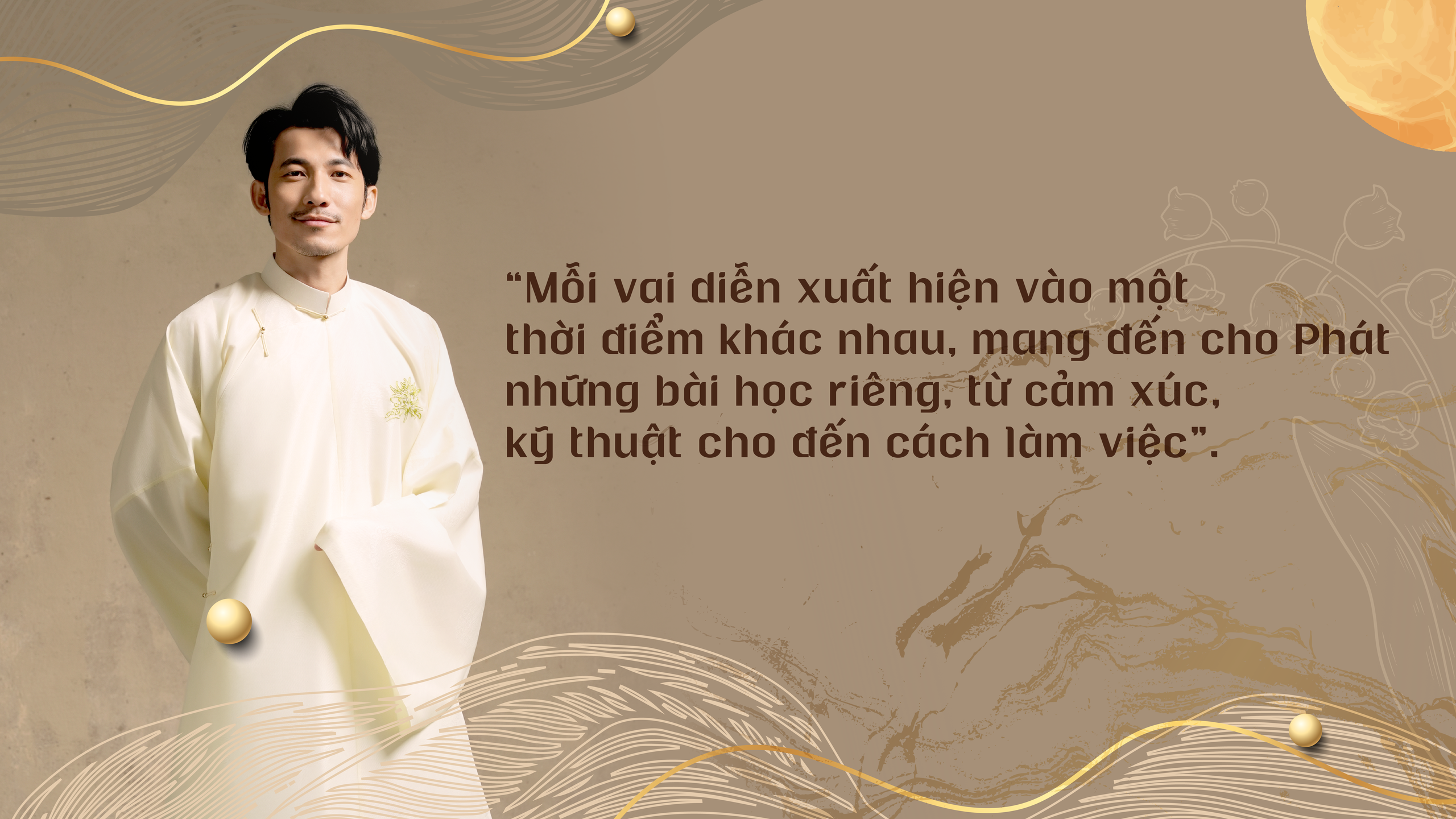 - Diễn viên Liên Bỉnh Phát: Phát không nghĩ đó là một vai diễn cụ thể mà là sự tương hỗ giữa các trải nghiệm nghề nghiệp. Mỗi vai diễn xuất hiện vào một thời điểm khác nhau, mang đến cho Phát những bài học riêng, từ cảm xúc, kỹ thuật cho đến cách làm việc. Tất cả như những mảnh ghép bổ trợ cho nhau, giúp Phát hoàn thiện đoạn đường nghề nghiệp của năm 2025 một cách trọn vẹn hơn.