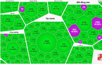 (NLĐO) - Gạt đi bóng đen của phiên lao dốc đầu tuần, thị trường chứng khoán Việt Nam ngày 24-3 đã ghi nhận sắc xanh lan tỏa và áp đảo trên bảng điện tử