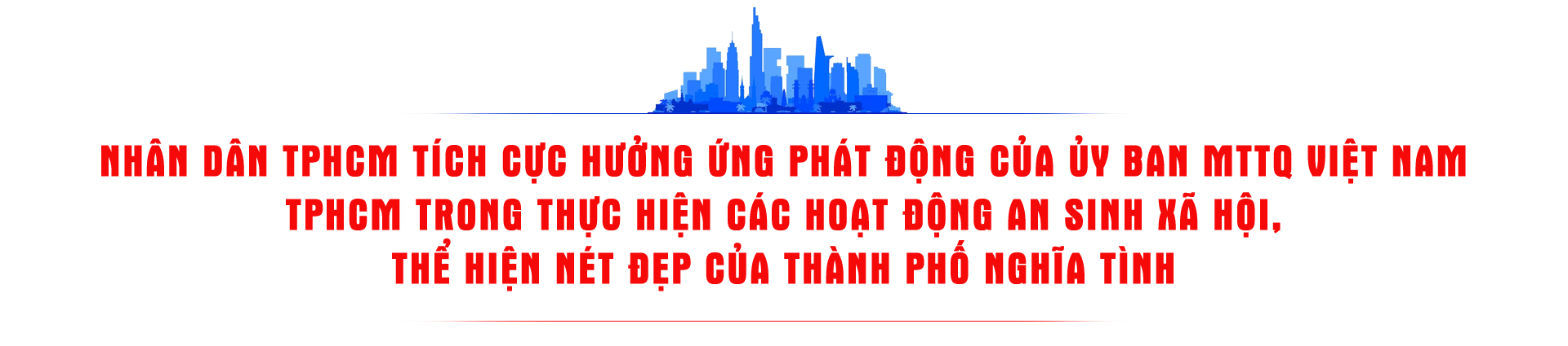 Thông qua các hoạt động trao tặng phương tiện sinh kế, tổ chức bữa cơm đại đoàn kết, MTTQ Việt Nam thành phố và các xã, phường, đặc khu đã tổ chức chăm lo cho người dân với tổng giá trị hơn 84 tỉ đồng. Đồng thời, tổ chức chăm lo Tết với hơn 367.036 suất quà với tổng kinh phí hơn 265,179 tỉ đồng.
