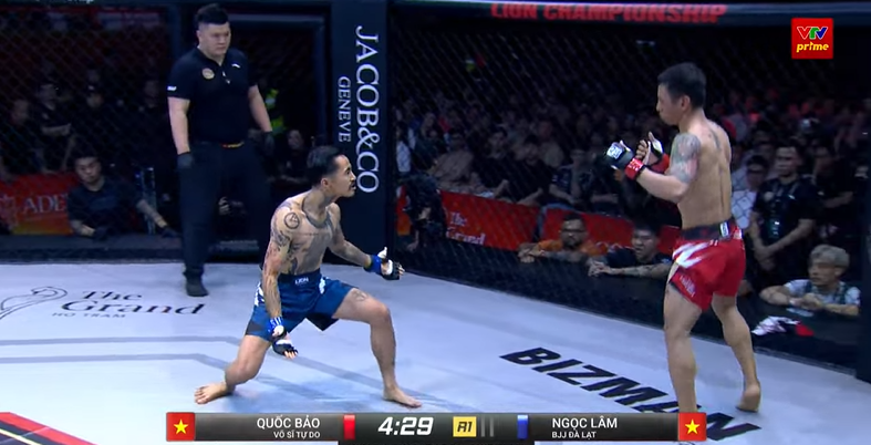 Chỉ sau 5 giây, Thành Công phải xin thua. Đây cũng là chiến thắng khóa siết thứ hai của Hoàng Đức tại LION Championship.