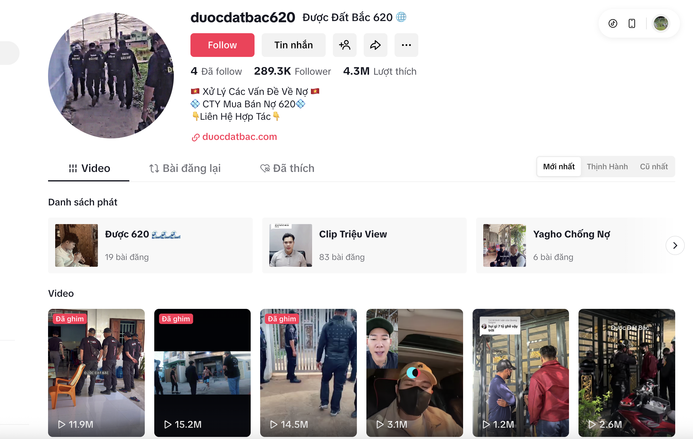 Trước khi bị bắt, Được Đất Bắc sở hữu nhiều kênh TikTok, trong đó có kênh Được Đất Bắc 620 có hơn 290.000 người theo dõi.
