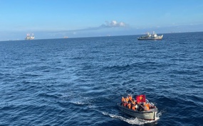 (NLĐO)- Thực hiện nhiệm vụ bầu cử sớm trên biển, tàu KN-206 cùng Trường Sa 04 và Trường Sa 21 xuất phát, mang thùng phiếu đến các điểm làm nhiệm vụ xa bờ