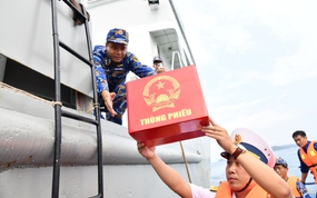 (NLĐO)- Tàu Trường Sa 04 và Trường Sa 21 đã hoàn thành nhiệm vụ đưa thùng phiếu đến với cử tri trên các nhà giàn DK1 và ngư dân bám biển.