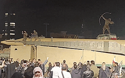 (NLĐO) - Người dân thủ đô Tehran của Iran chứng kiến tên lửa đạn đạo xuất hiện ngay giữa quảng trường Enghelab trong tối 21-4.