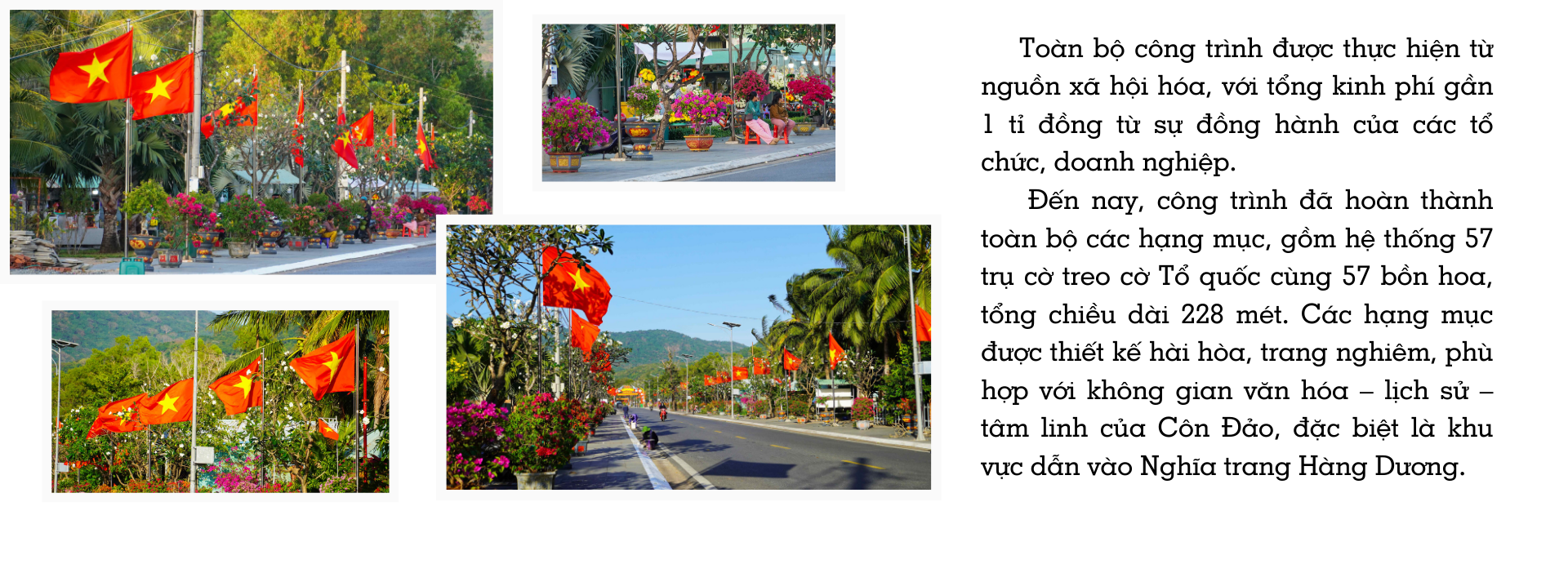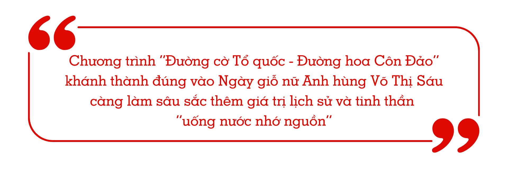 Sự kết nối bền chặt ấy được cụ thể hóa bằng công trình "Đường cờ Tổ quốc - Đường hoa Côn Đảo" do Báo Người Lao Động phối hợp với chính quyền đặc khu Côn Đảo (TPHCM) triển khai trong tháng 11 và 12-2025 trên tuyến đường Nguyễn An Ninh, dẫn vào Nghĩa trang Hàng Dương.