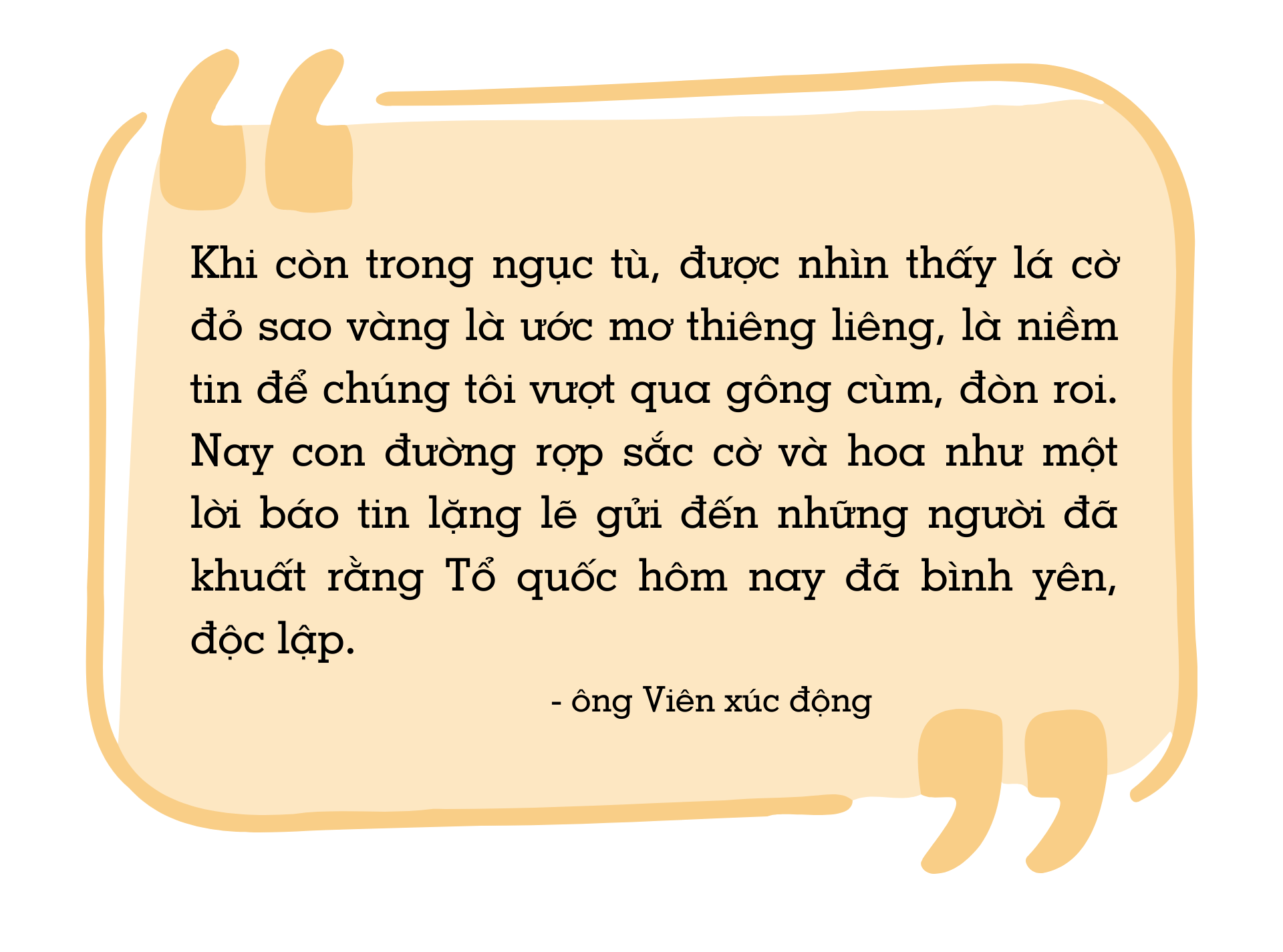 Đối với ông Nguyễn Xuân Viên, cựu tù chính trị duy nhất còn sống trên Côn Đảo, mỗi lá cờ Tổ quốc tung bay trên tuyến đường Nguyễn An Ninh còn gợi lại ký ức về những năm tháng lao tù khốc liệt.