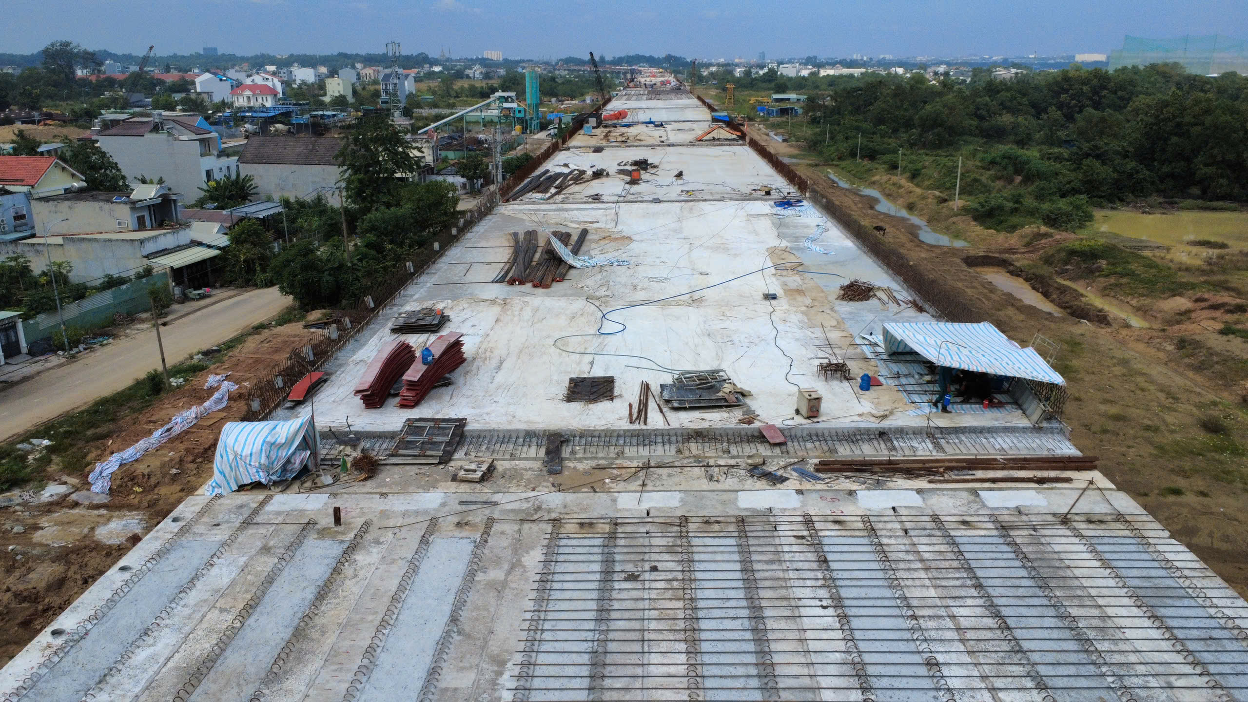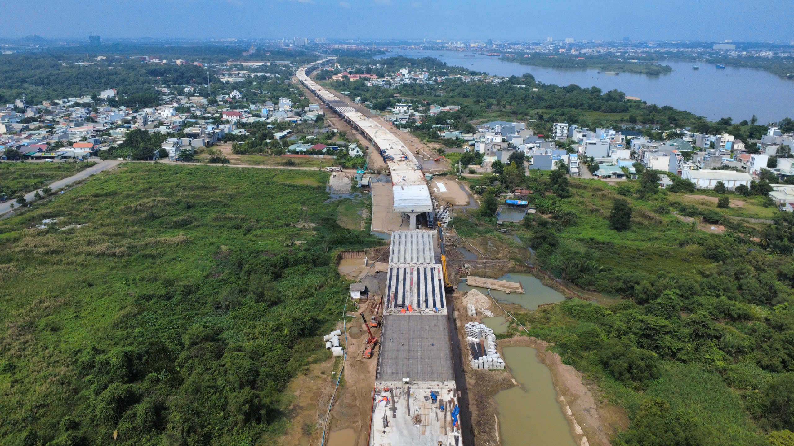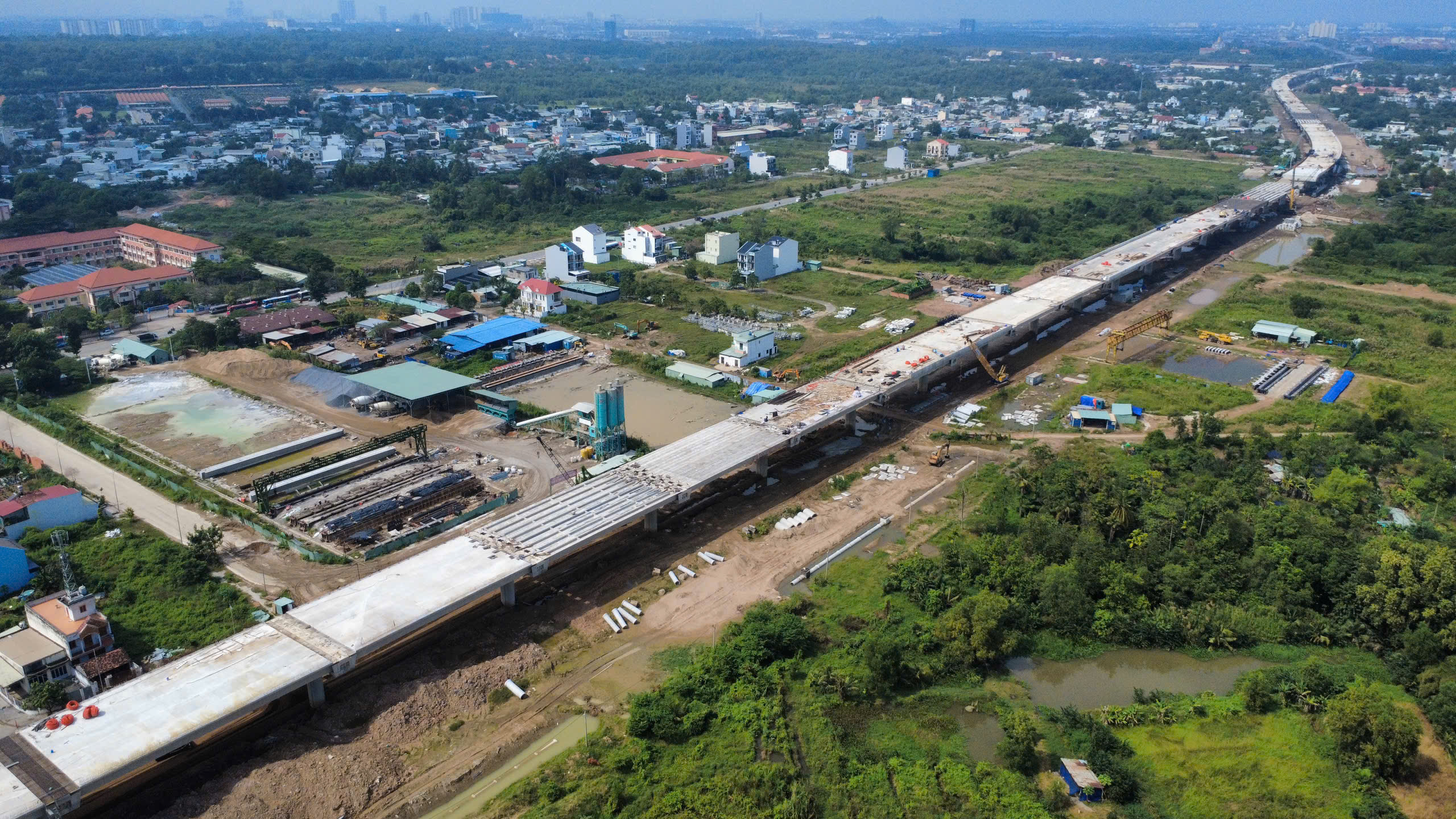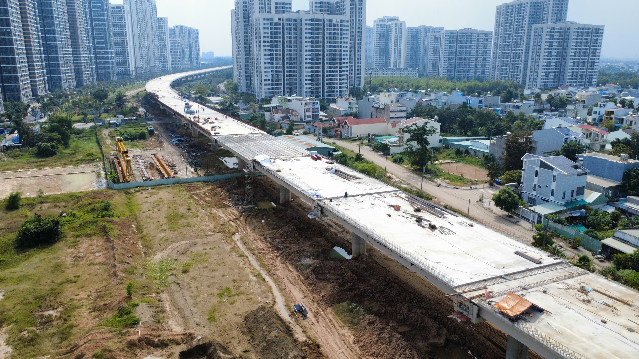 Những ngày đầu tháng 12, công trường dự án Vành đai 3 TPHCM trở nên nhộn nhịp hơn bao giờ hết, với hàng trăm công nhân, kỹ sư và máy móc cơ giới hoạt động liên tục để kịp tiến độ thông xe kỹ thuật đoạn cầu cạn dài 14,7 km trên địa bàn TP Thủ Đức cũ vào ngày 19-12.