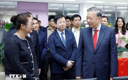 Tổng Bí thư Tô Lâm tới thăm, chúc Tết động viên cán bộ, phóng viên, người lao động đang thực hiện nhiệm vụ trực trong dịp Tết Nguyên đán tại VTV và VOV.
