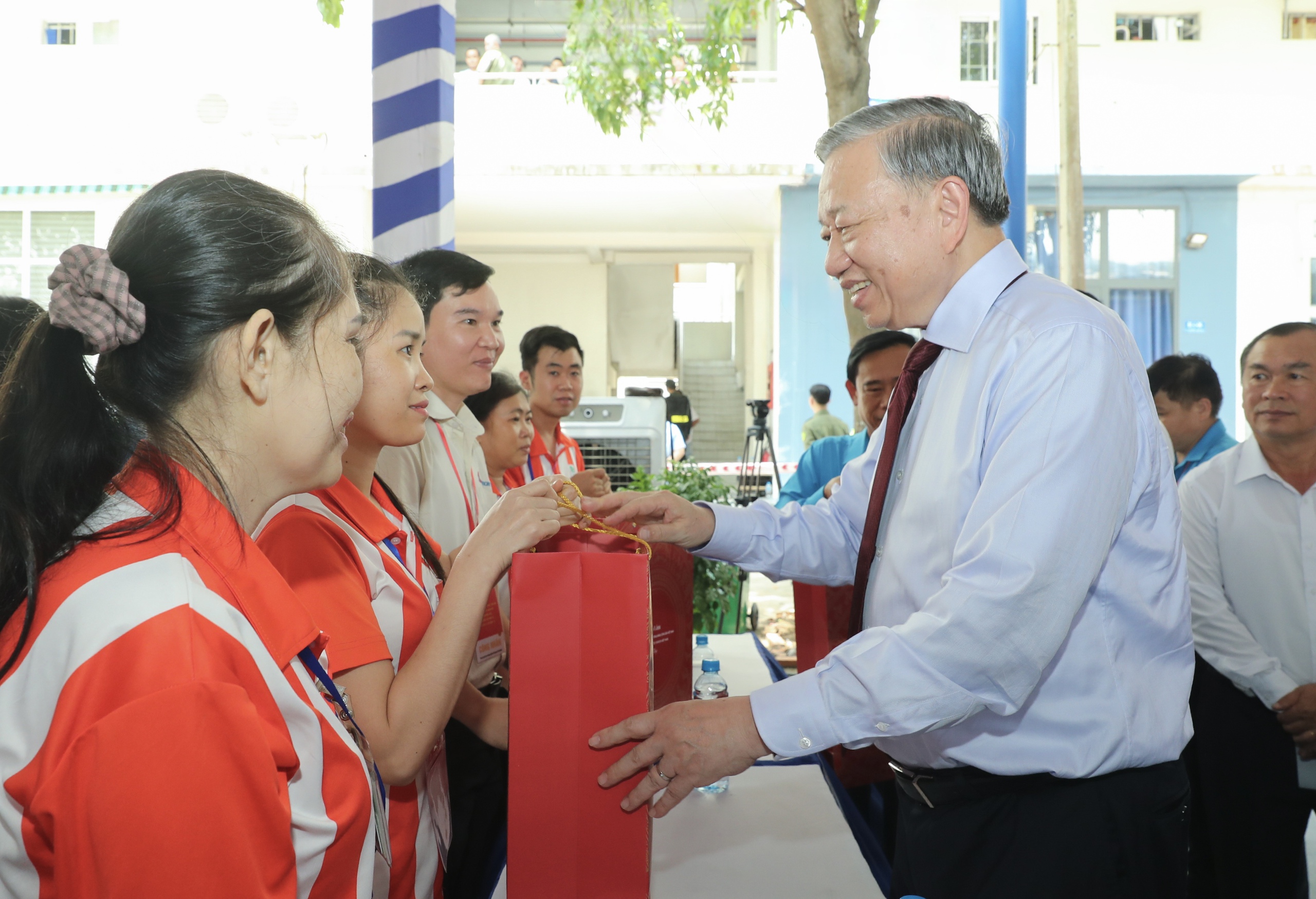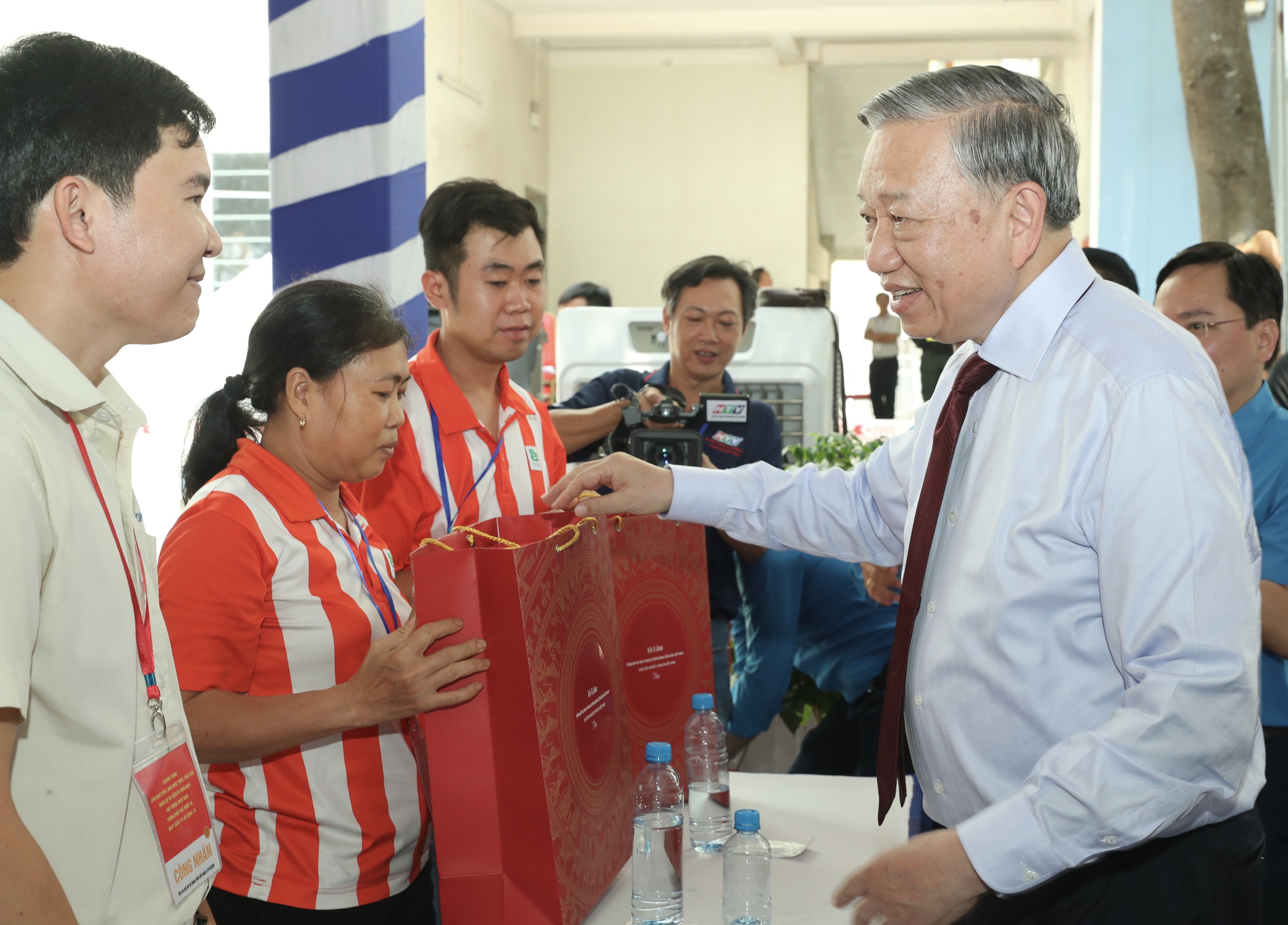 Dịp này, Tổng Bí thư, Chủ tịch nước đã trao những món quà động viên công nhân - lao động tại TPHCM