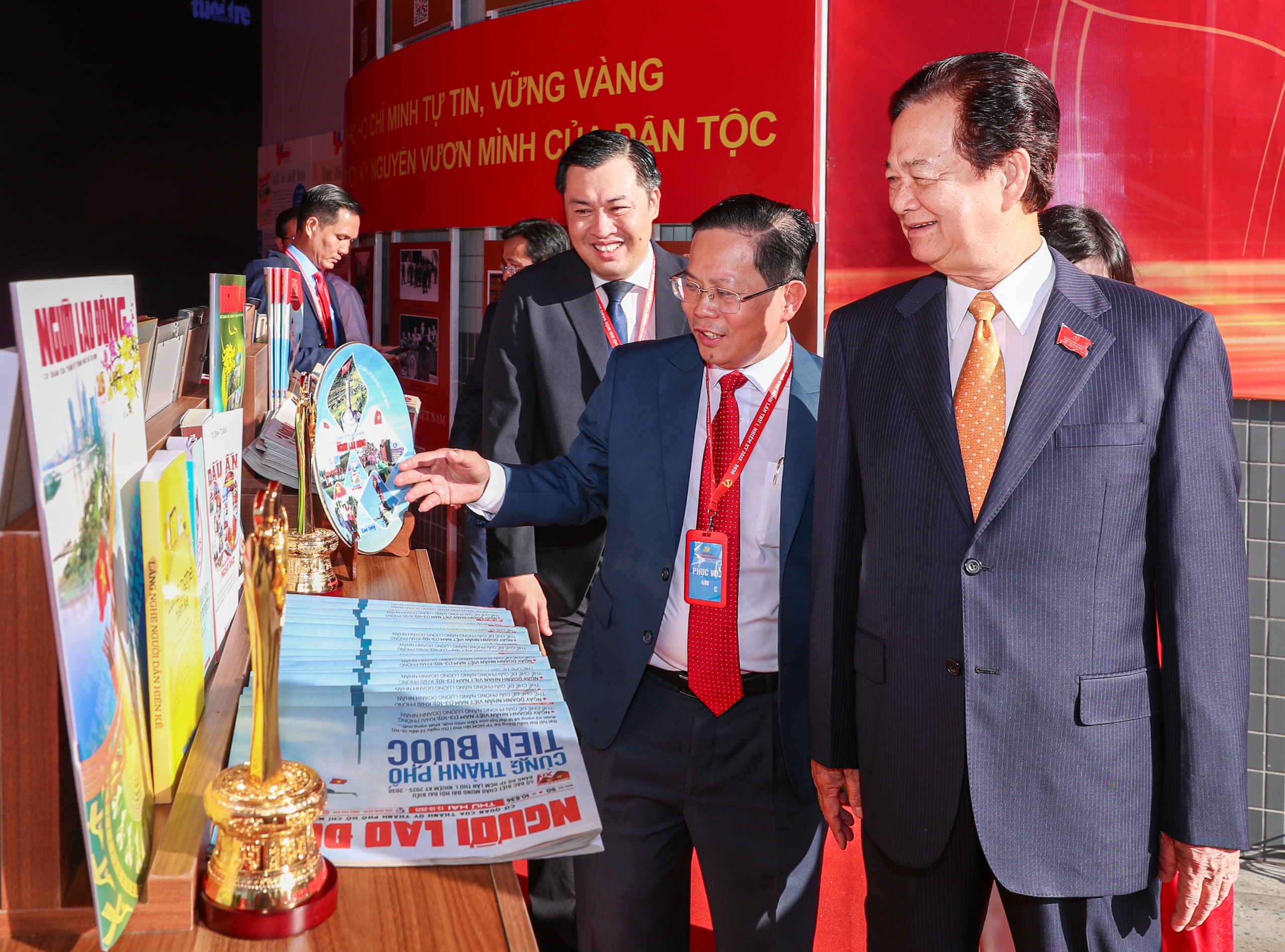Tổng Bí thư Tô Lâm cùng lãnh đạo, nguyên lãnh đạo Đảng, Nhà nước và TP HCM đã đến tham quan khu vực không gian triển lãm thành tựu Báo chí - Xuất bản TP HCM. Đây là không gian trưng bày các ấn phẩm báo chí - xuất bản tiêu biểu đại diện cho hơn 1.500 đơn vị xuất bản và phát hành, cùng 39 cơ quan báo chí chủ lực trên địa bàn TP HCM, thể hiện tinh thần đổi mới, sáng tạo và khát vọng phát triển của báo chí – xuất bản thành phố trong thời kỳ chuyển đổi số.