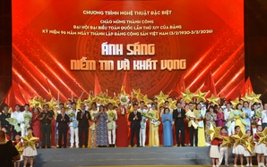 (NLĐO) - Tổng Bí thư Tô Lâm và lãnh đạo, nguyên lãnh đạo Đảng, Nhà nước đã tham dự Chương trình nghệ thuật đặc biệt "Dưới lá cờ vẻ vang của Đảng".