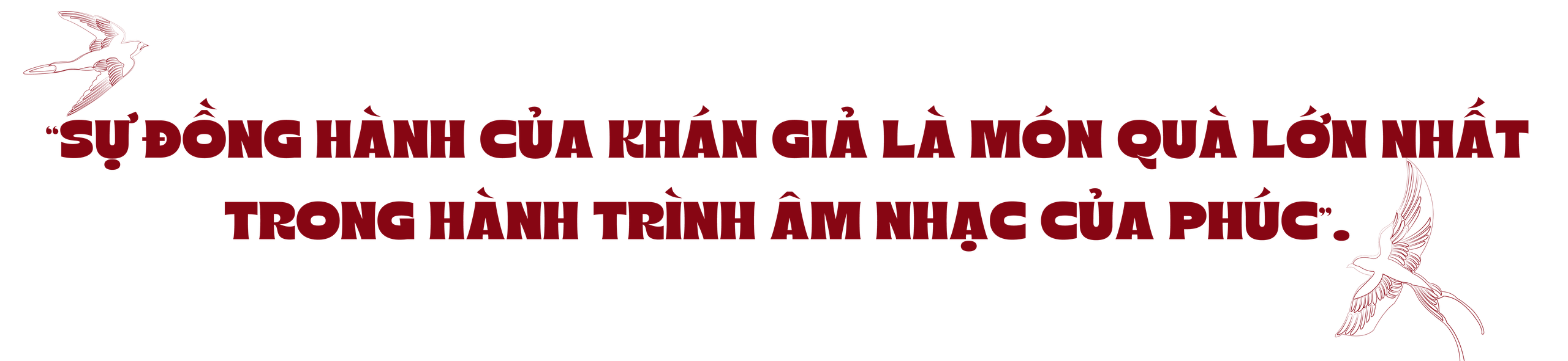 - Bài học lớn nhất của Phúc là: hãy chân thành và kiên nhẫn với con đường mình chọn. Dù thành công hay thất bại, chỉ cần mình không đánh mất bản thân thì âm nhạc sẽ luôn dẫn dắt mình đi tiếp.
