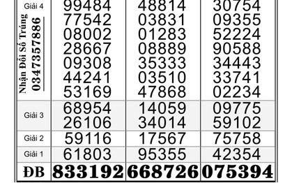 (NLĐO) - Hôm nay (13-1), xổ số miền Nam sẽ mở thưởng đối với vé số của 3 đài là Bến Tre, Vũng Tàu và Bạc Liêu.