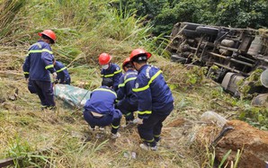 (NLĐO) - Khi lưu thông qua đèo Bảo Lộc, xe tải bất ngờ mất phanh, lao xuống vực khiến tài xế tử vong, mắc kẹt trong cabin.