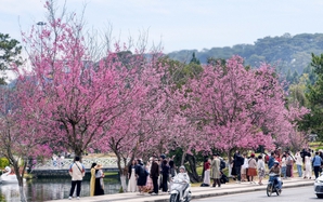 (NLĐO) - Hàng trăm cây mai anh đào nở rực rỡ như khoác lên một chiếc áo hồng thắm cho hồ Xuân Hương, thu hút hàng vạn du khách đến Đà Lạt thưởng lãm.